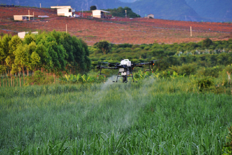 農(nóng)投集團(tuán)甘蔗雙高基地使用無(wú)人機(jī)田間管理