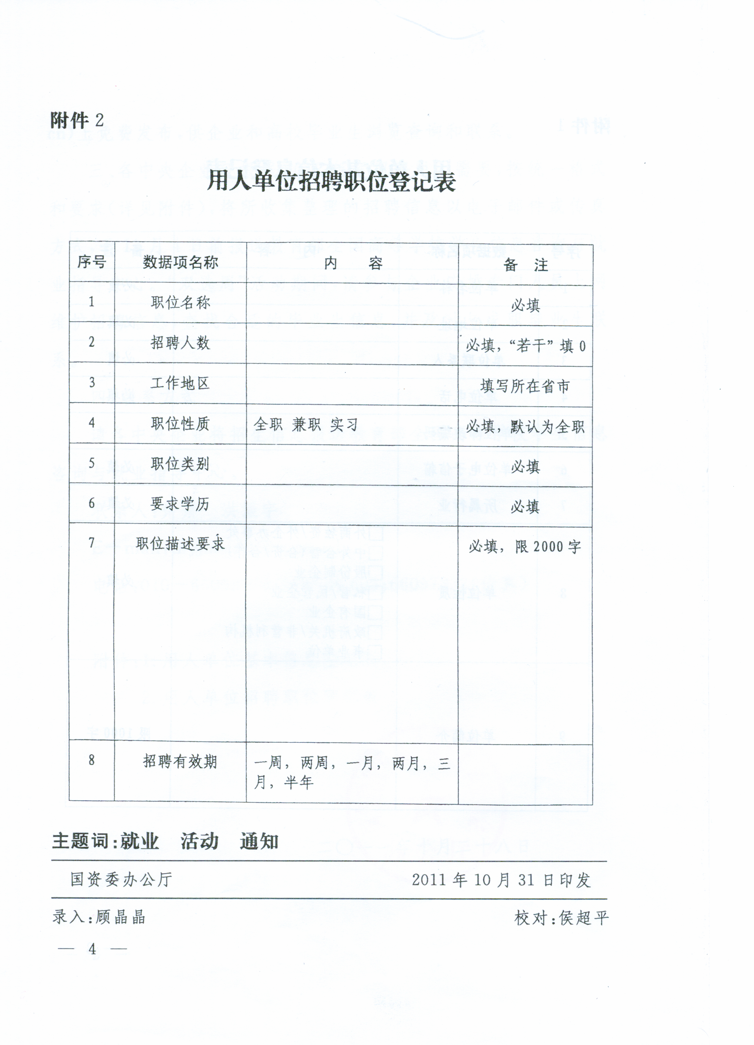 2.用人單位招聘職位登記表