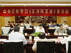 中國航天科技集團公司、中國華能集團公司、中國電信集團公司、中國鋁業公司、中國遠洋運輸(集團)總公司、國家開發投資公司、中國鐵路工程總公司、中國鐵道建筑總公司等8戶中央企業黨委(黨組)負責同志介紹了本公司學習《江澤民文選》的情況。