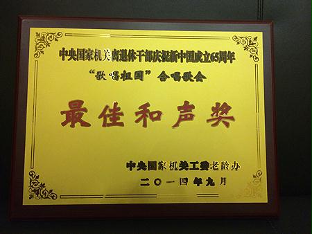 國資委離退休干部合唱隊參演中央國家機關離退休干部慶祝新中國成立65周年“歌唱祖國”歌會匯演并榮獲最高獎項