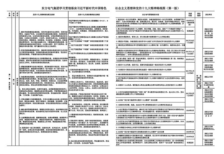 為深刻領會習近平新時代中國特色社會主義思想精髓和黨的十九大精神核心要義,著力在學懂、弄通、做實上下功夫,東方電氣黨組牢固樹立“四個意識”,對照黨的十九大報告,從黨的建設、制造強國、一帶一路、深化改革、脫貧攻堅和企業(yè)文化等六個方面繪就了《東方電氣集團學習貫徹落實習近平新時代中國特色社會主義思想和黨的十九大精神路線圖》,為東方電氣開啟新征程新使命提供行動指南。