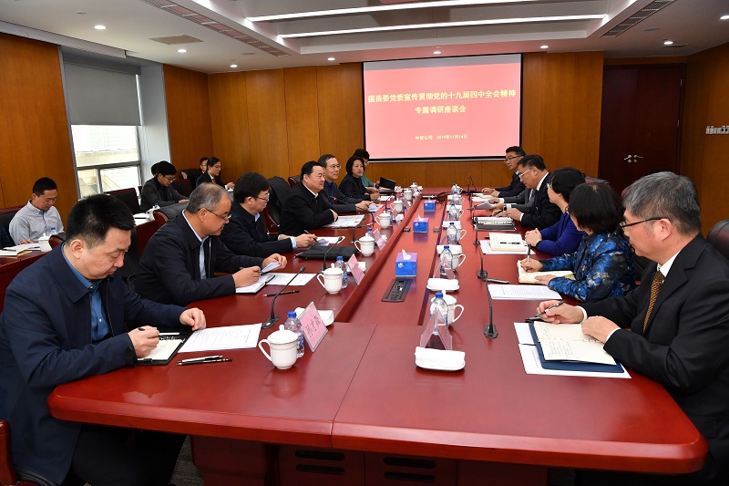 11月14日,國資委黨委書記、主任郝鵬到中智公司開展專題調研,宣傳貫徹黨的十九屆四中全會精神,并與企業干部職工座談,強調要深入學習貫徹習近平總書記在黨的十九屆四中全會上的重要講話精神和《中共中央關于堅持和完善中國特色社會主義制度、推進國家治理體系和治理能力現代化若干重大問題的決定》,貫徹落實黨中央關于人才工作決策部署,聚焦提高人力資源服務質量和水平,推動企業持續深化改革、創新發展,努力培育人力資源服務“領頭羊”企業,為推動我國經濟高質量發展提供有力人才支撐。