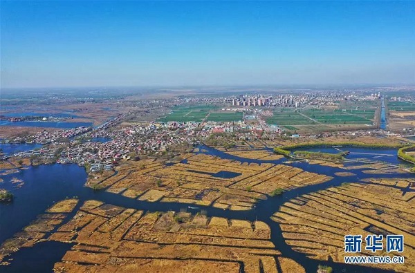 2019年3月31日,無人機拍攝的雄安新區白洋淀。