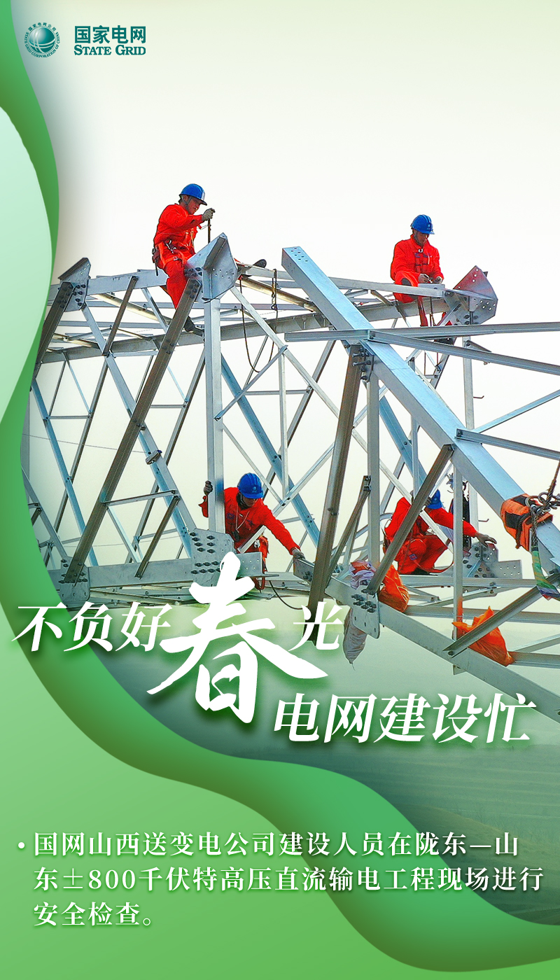 又是一年春好時(shí)。國(guó)家電網(wǎng)有限公司堅(jiān)決扛牢電力保供首要責(zé)任,組織各單位抓住當(dāng)前工程建設(shè)好時(shí)機(jī),細(xì)化安全、人員、物資、裝備等各項(xiàng)措施,全力推動(dòng)電網(wǎng)重大項(xiàng)目建設(shè),保障電網(wǎng)安全穩(wěn)定運(yùn)行和電力可靠供應(yīng),服務(wù)經(jīng)濟(jì)社會(huì)高質(zhì)量發(fā)展。