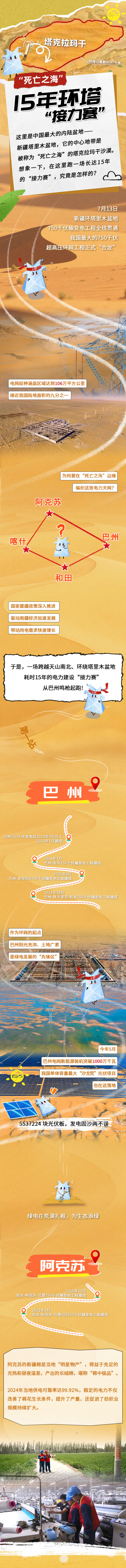 7月13日,在塔里木盆地南緣的新疆和田地區民豐縣,隨著牽引機將最后一段電線成功從183號鐵塔拽至188號鐵塔,標志著歷時15年建設的環塔里木盆地750千伏輸變電工程全線貫通,形成了一條圍繞塔里木盆地的750千伏超高壓輸電環網。今天,讓我們通過一組數據速覽“死亡之海”15年環塔“接力賽”。