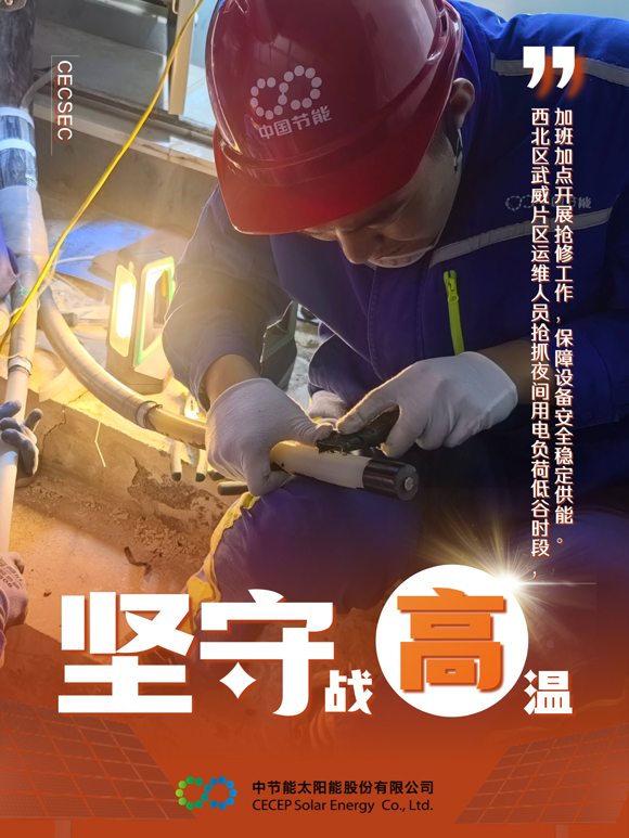 眼下正值迎峰度夏的關(guān)鍵時(shí)期,中國(guó)節(jié)能所屬太陽(yáng)能公司開啟“高溫護(hù)航”模式,運(yùn)維人員堅(jiān)守崗位,全力保障電力供應(yīng)。