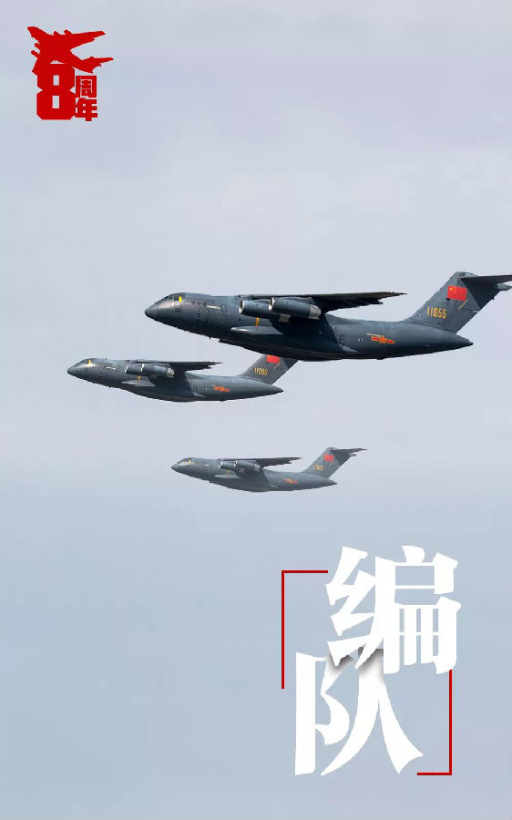 2017年7月30日,慶祝中國人民解放軍建軍90周年閱兵在朱日和訓練基地舉行。由1架運20和2架運9組成的運輸機編隊接受檢閱。