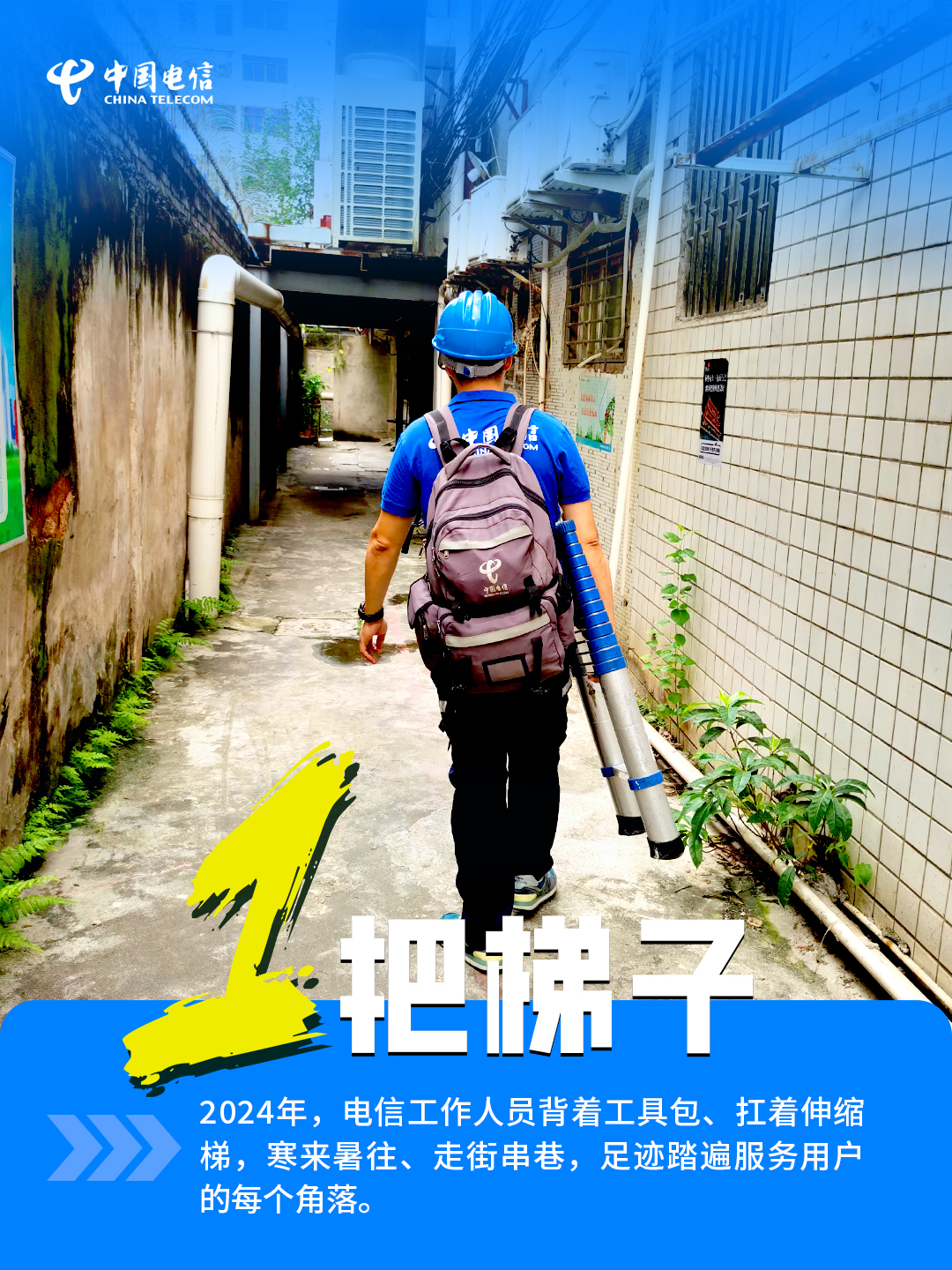 “1”個工具箱、“1”把梯子、“1”天24小時的隨時響應、為最后“1”公里的通信暢達……過去的2024年,中國電信工作人員全力守護通信通暢。