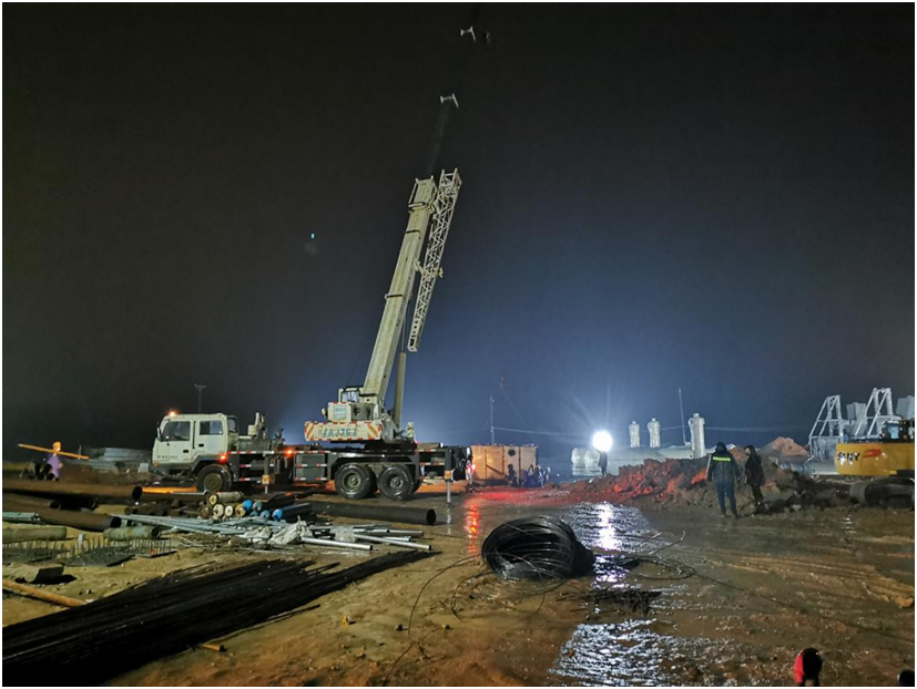 2月14日深夜,為了搶奪工期,建設(shè)醫(yī)廢項(xiàng)目轉(zhuǎn)運(yùn)營的工作人員冒雨進(jìn)行主設(shè)備吊裝。他們披星戴月,是為了讓更多的人早日迎接陽光;他們忽略親人,是為了讓更多的人早日擁抱親人。
