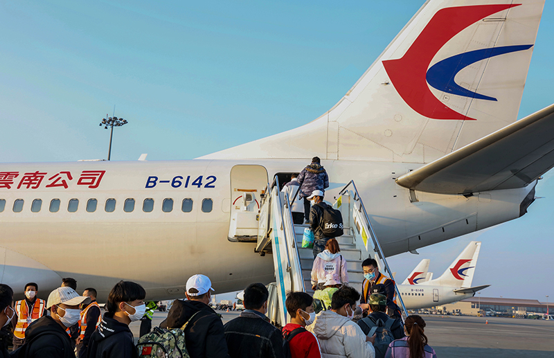 2月26日,云南省組織一批務工人員乘坐東航返崗包機前往山東煙臺復工。