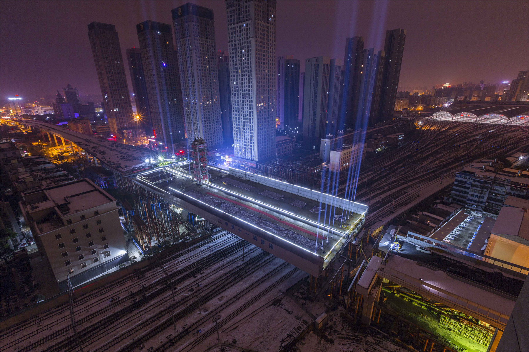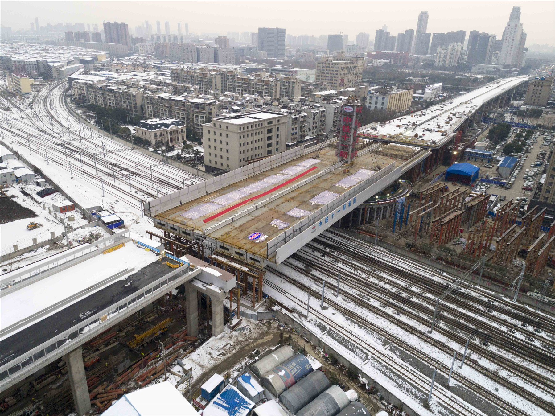 1月31日凌晨3時4分,由中國鐵建所屬中鐵十一局二公司承建的武漢市常青路主線轉體橋歷時103分鐘順時針轉動81度,跨越漢口火車站西咽喉岔區9股道,與引橋實現精準對接,順利合龍,刷新了轉體最不平衡、轉體橋面最寬、跨越特等站鐵路股道數最多三項轉體橋世界紀錄。