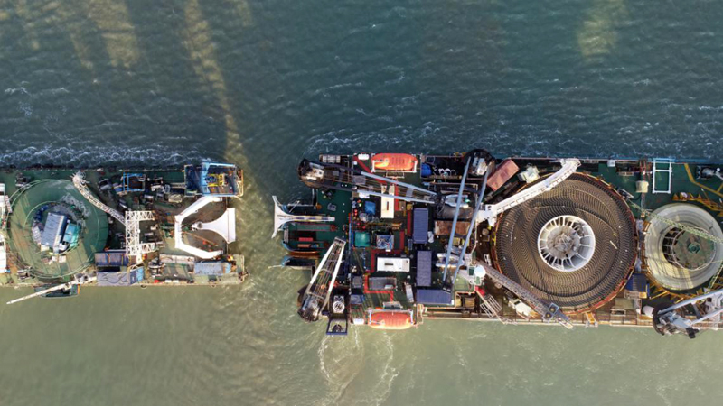 “特別是林詩島終端站登陸點,轉彎角度達120度,要始終保持控制彎曲半徑不小于5米,我們通過優化施工工序,合理調配施工船只,保證按照預定方案登陸。"現場施工負責人表示。
