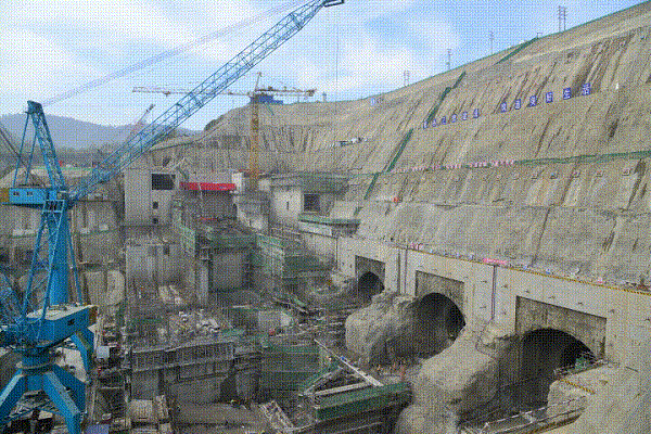 主要引水發電系統包括電站進水口、引水隧洞、地面廠房、升壓站等。目前廠房邊坡、基坑開挖支護均已完成;升壓站安裝間Ⅰ、Ⅱ段混凝土澆筑已完成,1號、2號、3號、4號機組段澆筑施工穩步推進;4條引水隧洞開挖支護全部完成,壓力鋼管安裝進行中;進水塔土建工程全面啟動;引水發電系統工程混凝土累計澆筑完成132000立方米。廠房工程累計完成工程量的42.53%。