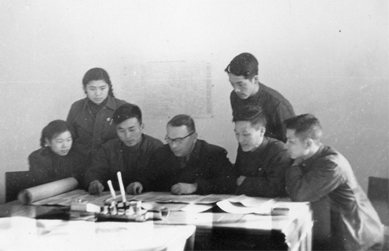 1954年,為引進學習蘇聯鐵路技術,第一批中國通號青年員工與蘇聯專家一起研究電氣集中設計。黑白照片的背后,是第一代中國通號青年人奮斗的縮影。