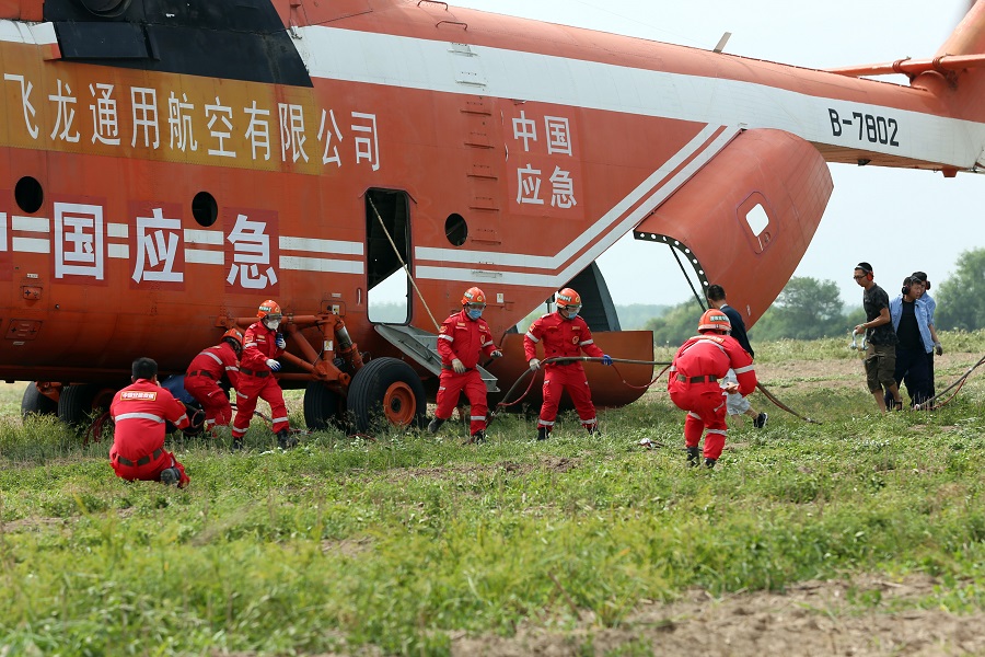 2019年8月29日,湖北省在荊州洪湖長江干堤龍口鎮首次組織運用大型直升機遂行應對重大堤防險情專項演練。