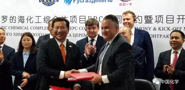 10月11日,中國化學工程集團有限公司(簡稱中國化學)黨委書記、董事長戴和根與俄羅斯RusGasDobycha公司首席執行官康斯坦丁?馬哈夫先生(CEO Mr. Konstantin Makhov)在四川成都簽署俄羅斯波羅的海化工綜合體(BCC)項目FEED+EPC總承包合同,合同金額約120億歐元。