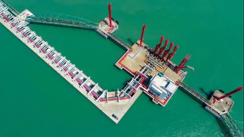 中科煉化30萬(wàn)噸級(jí)原油泊位項(xiàng)目泊位全長(zhǎng)440米,引橋長(zhǎng)1326米,采用高樁梁板結(jié)構(gòu)。項(xiàng)目位于廣東湛江東海島,港口碼頭與煉化裝置直線距離僅1100米,共有30萬(wàn)噸級(jí)原油碼頭、10萬(wàn)噸級(jí)成品油碼頭等8個(gè)泊位,年吞吐能力達(dá)3400萬(wàn)噸。