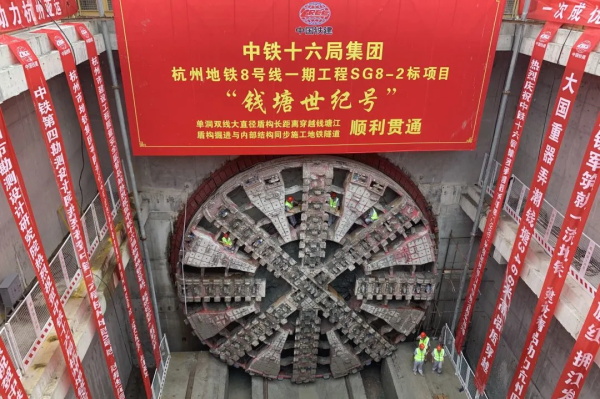 9月14日上午,歷經408天的日夜奮戰,由中國鐵建所屬中鐵十六局集團承建的杭州地鐵8號線重難點控制性工程——文橋區間風井至橋頭堡站區間盾構隧道順利貫通,標志著國內單洞雙線大直徑盾構最長距離穿越錢塘江地鐵隧道施工取得重大突破,為2022年杭州亞運會前全線通車運營奠定了堅實基礎。