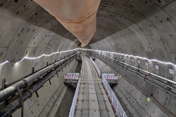 該隧道首次在地鐵施工中采用了盾構掘進與內部結構同步施工工藝。項目團隊通過BIM技術研究及運用,模擬最佳行車通道、最佳設備放置空間、最佳車輛運輸措施,在狹小空間內實現25臺車輛和機械設備科學運轉,各項工序銜接緊、施工效率高,節約工期100多天。