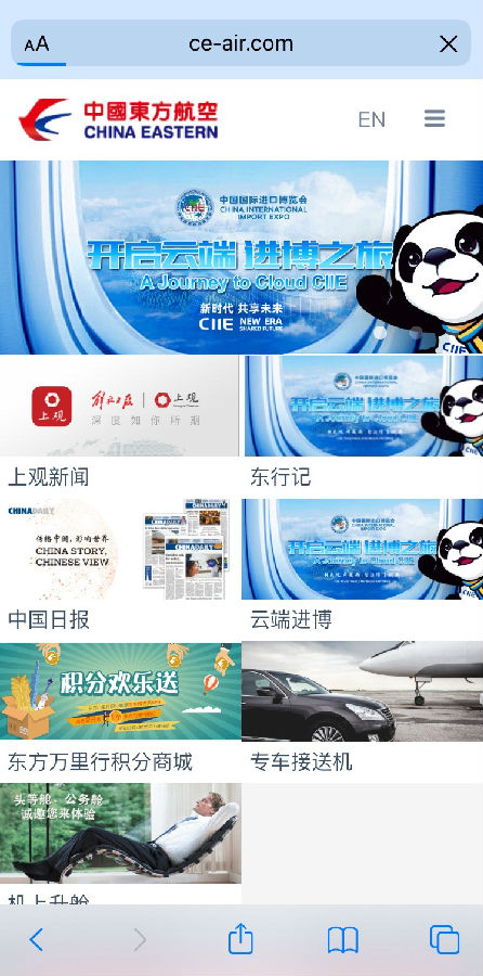 此外,東航的空中WIFI平臺(tái)也將上線“東航進(jìn)博會(huì)云端分會(huì)場(chǎng)”,聚合展示進(jìn)博會(huì)官網(wǎng)、進(jìn)博新聞等專題內(nèi)容。旅客在乘坐東航航班時(shí),可通過(guò)空中WIFI登錄界面的進(jìn)博專欄便捷訪問(wèn)相關(guān)內(nèi)容,實(shí)時(shí)了解進(jìn)博會(huì)最新動(dòng)態(tài)。