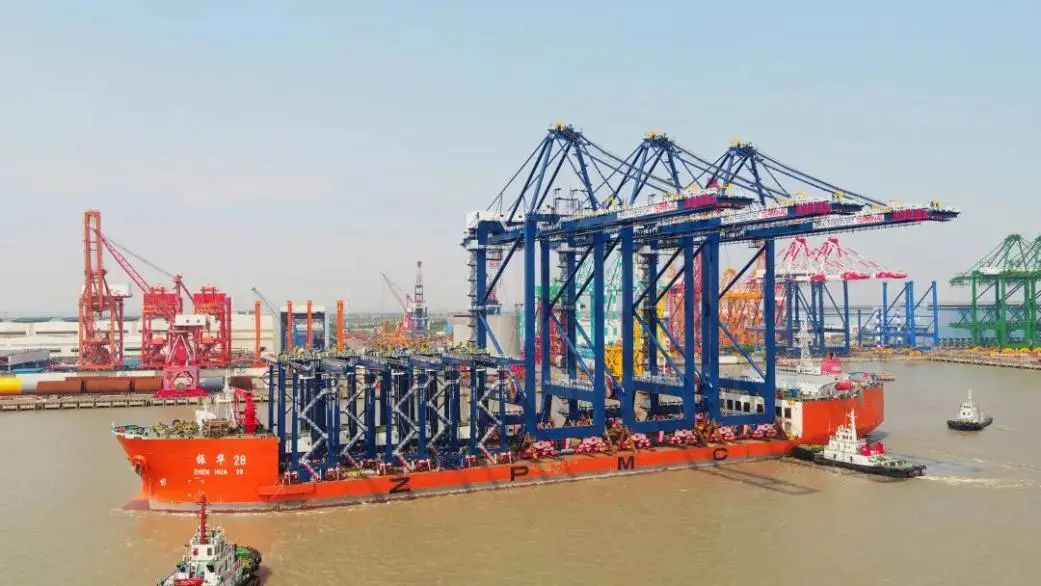 近日,中交集團所屬中國港灣投資建設運營,振華重工設計建造的尼日利亞萊基碼頭首批3臺岸橋和10臺輪胎吊從振華重工上海崇明島長興分公司碼頭發運。