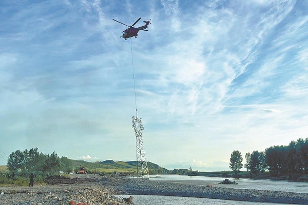 “直升機可以解決無法使用常規起重設備的問題,固定翼無人機續航里程長,可以提高對水淹地區地形和輸配電設備受損情況的巡檢效率。”李勐對直升機、無人機等高科技裝備作業充滿了期待,“如果沒有直升機,我們至少要等到半個多月后附近的泥水干了才能施工。”