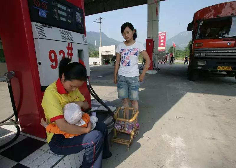 加油站喂奶,因為手中攥著加油槍