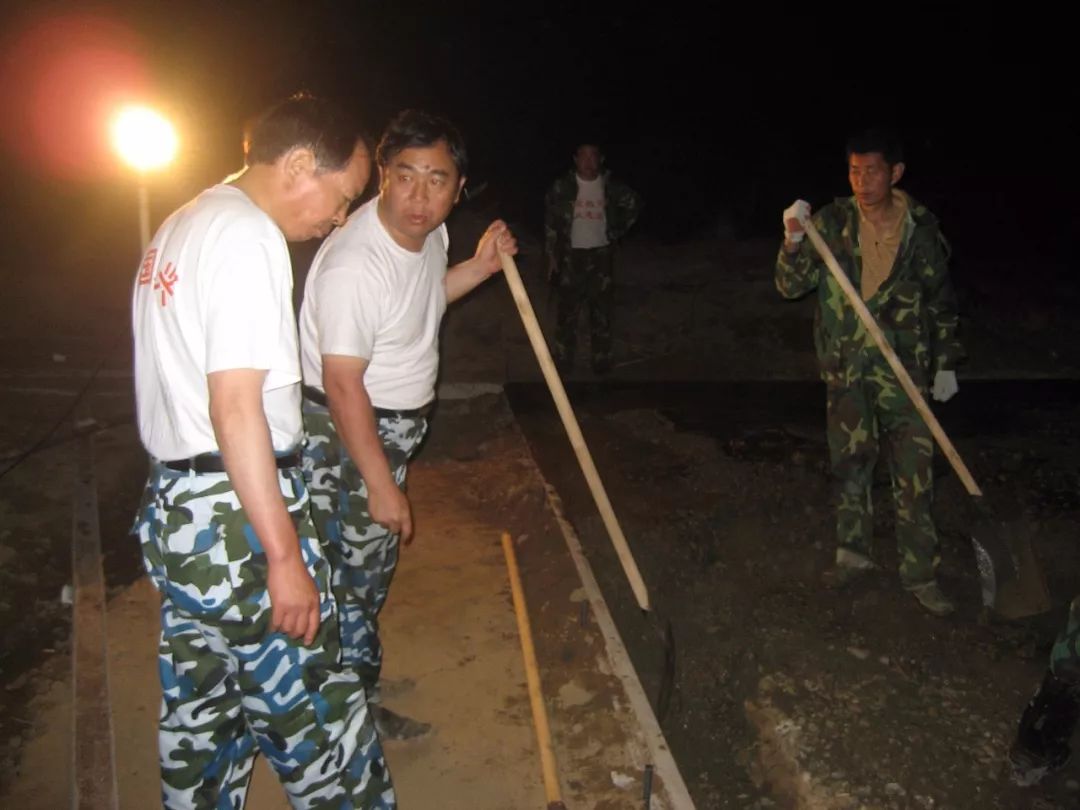10日早晨,天剛蒙蒙亮, 82名突擊隊員開進明鏡中學。由于施工現場地勢高低不平,最大落差達到40厘米,王興國和隊員們就用鍬挖,用鎬刨,從早晨一直干到次日凌晨2點多,硬是用雙手完成了所有土地平整,并澆筑了兩塊混凝土基礎地面。許多隊員的手上、腳上都磨起了血泡,腰也累得直不起來。