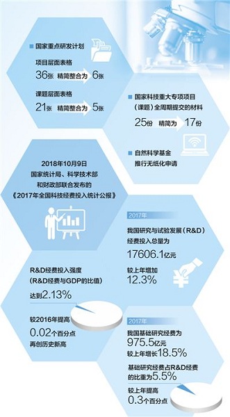 以科研人員詬病較多的“報(bào)表”為例,經(jīng)過(guò)一系列改革措施,基本完成了各類報(bào)表的整合精簡(jiǎn)、減少了信息填報(bào)和材料報(bào)送。國(guó)家重點(diǎn)研發(fā)計(jì)劃項(xiàng)目層面的36張表格精簡(jiǎn)整合為6張,課題層面的21張表格精簡(jiǎn)整合為5張;國(guó)家科技重大專項(xiàng)項(xiàng)目(課題)全周期提交的材料由25份精簡(jiǎn)為17份;自然科學(xué)基金推行無(wú)紙化申請(qǐng)。