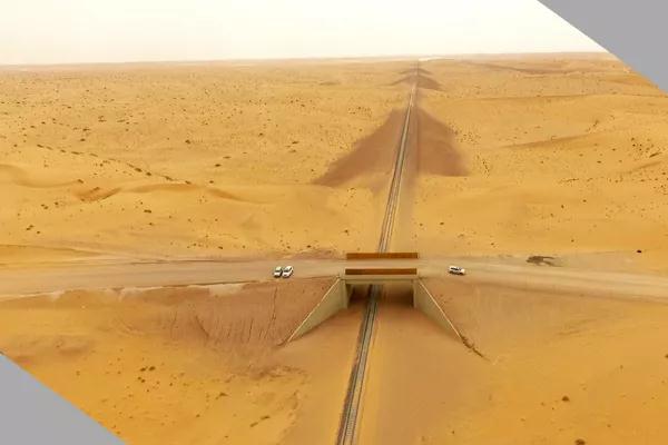 沙特南北鐵路全長2400公里,線路穿越阿拉伯半島第二大沙漠——納夫得沙漠,是沙特阿拉伯王國修建的第一條現(xiàn)代化重載鐵路。