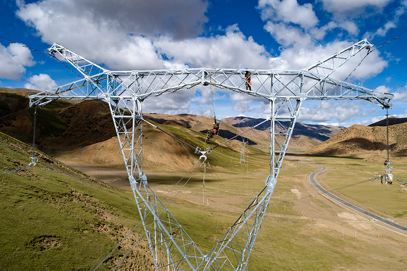 2020年7月,在西藏吉隆變電站旁的一座鐵塔上,3名工人聯通了最后一根導線,標志著阿里聯網工程1689公里的線路全部貫通。“十三五”期間,國家電網在西藏建成了以500千伏為骨干網架的統一電網,主電網延伸覆蓋西藏74個縣(區)和主要鄉鎮,光明與溫暖給西藏群眾的生活帶來巨變。