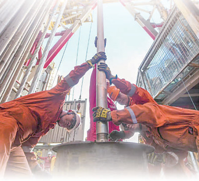 中國海油現場作業人員在海上鉆井平臺作業