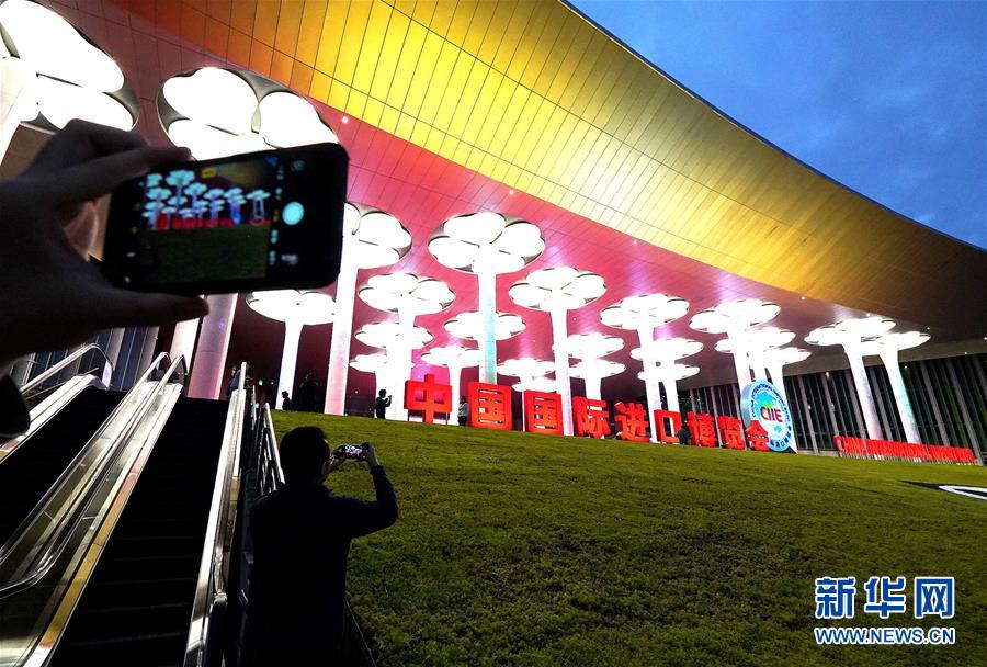 11月4日,人們在拍攝國家會展中心(上海)場館夜景。(新華社記者 陳飛 攝)