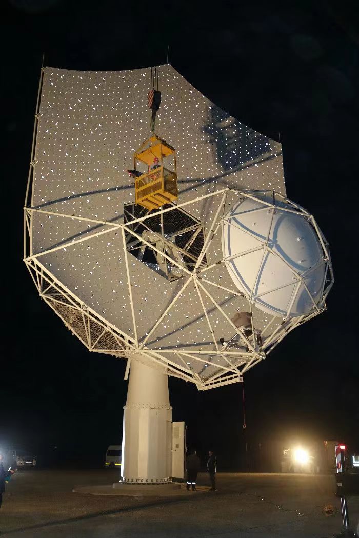 9月20日上午,SKA進(jìn)入建設(shè)階段以來(lái)的首臺(tái)中頻天線,在中國(guó)電科網(wǎng)絡(luò)通信研究院(中國(guó)電科54所)工程現(xiàn)場(chǎng),正式吊裝。作為SKA反射面天線工作包聯(lián)盟的牽頭單位,中國(guó)電科網(wǎng)絡(luò)通信研究院聯(lián)合團(tuán)隊(duì)內(nèi)部來(lái)自南非、意大利等國(guó)的科研及工業(yè)機(jī)構(gòu),將共同完成SKA天線結(jié)構(gòu)工作包天線的建設(shè)任務(wù)。一個(gè)與國(guó)際接軌、正在快速成長(zhǎng)并走向成熟的SKA天線團(tuán)隊(duì)?wèi)?yīng)運(yùn)而生。