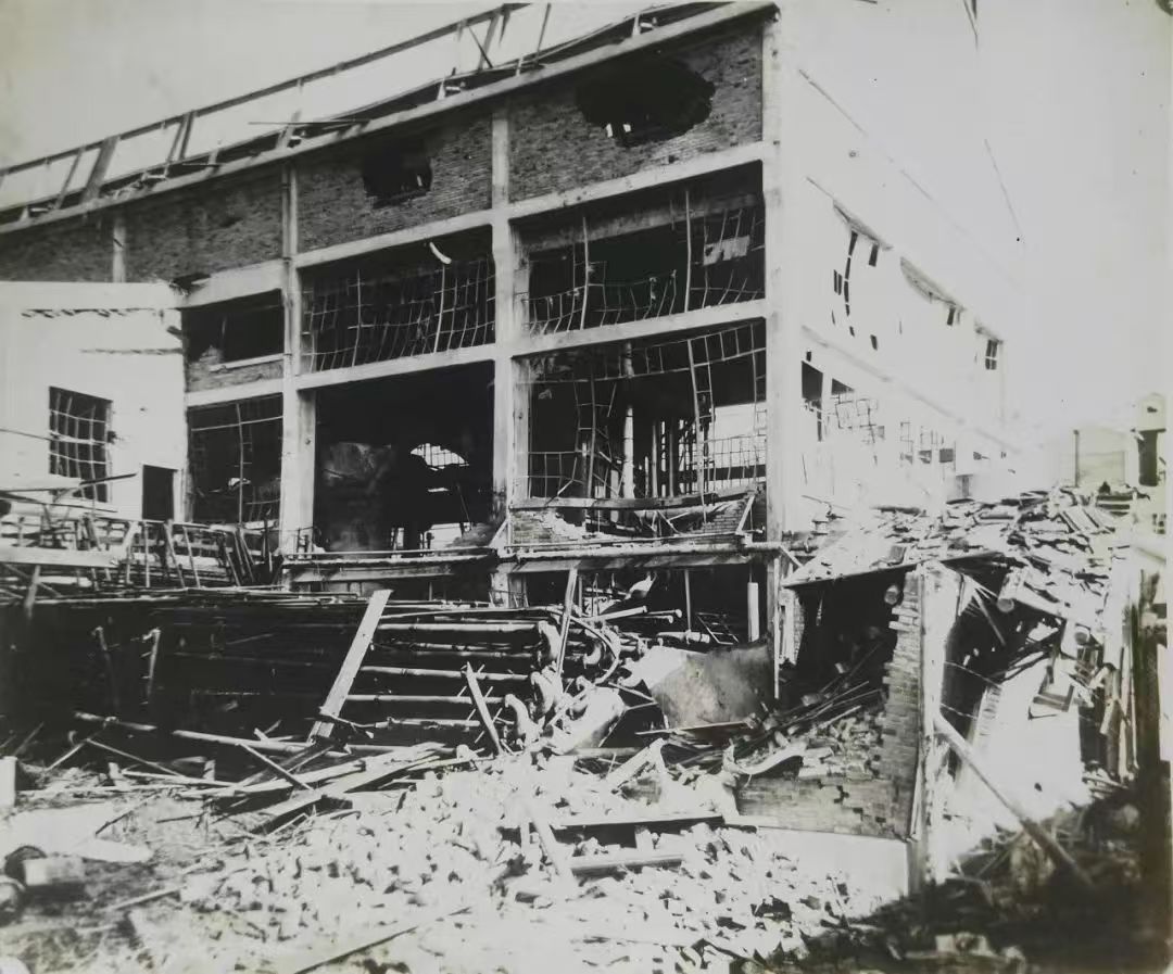 剛建成的永利铔廠硫酸裝置廠房和遭日軍轟炸后的硫酸裝置廠房