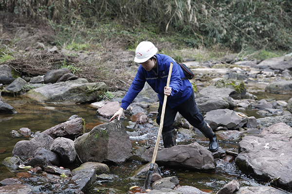 到了目的地,一行三人先趟過山下的一條河,沒走幾步,群山便將他們“淹沒”。山上多是密不透風的茂林野竹,他們先用鋒利的劈刀開路。因山勢太陡,再加地面潮濕,稍不小心就會滑倒,有時還會被帶刺的荊棘扎傷。下山時,為了節省力氣,他們會像滑滑梯一樣直接滑下去……