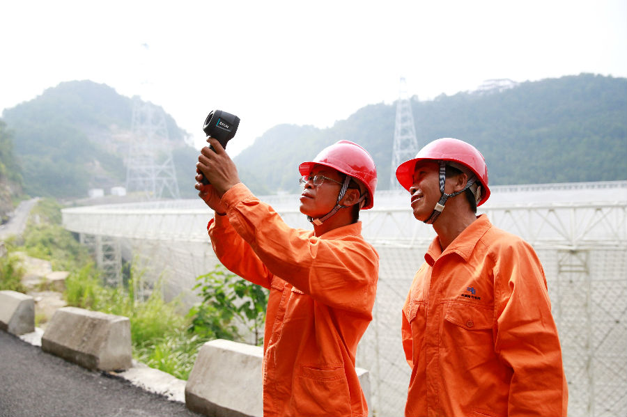 2019年是“天眼”由試運(yùn)行轉(zhuǎn)入正式運(yùn)行的關(guān)鍵一年,為了配合“天眼”的技術(shù)評(píng)審工作,“天眼供電服務(wù)隊(duì)”運(yùn)用超聲波檢測(cè)儀、紫外線探測(cè)儀、熱成像儀、局部放電測(cè)試儀、無(wú)人機(jī)等電網(wǎng)高科技設(shè)備,對(duì)3681臺(tái)設(shè)備進(jìn)行特巡特維,確保“天眼”通過國(guó)家驗(yàn)收的電力需求和相關(guān)保障工作。