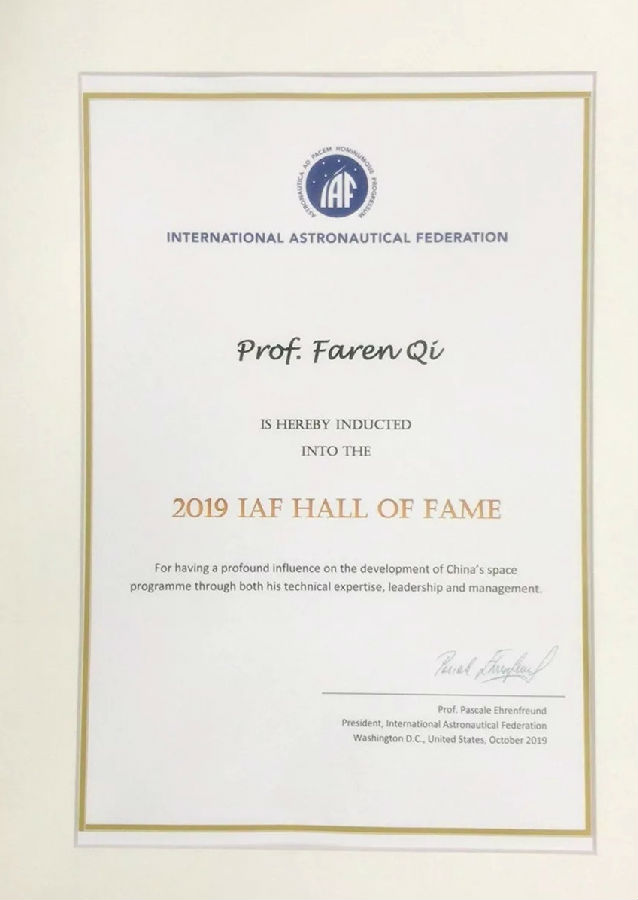 近日,在2019年國際宇航大會(IAC)上,中國航天科技集團有限公司五院戚發軔院士榮獲了本年度國際宇航聯合會(IAF)“名人堂”( Hall of Fame)獎項,該獎項旨在表彰對推動空間科學技術有杰出貢獻的科學家。