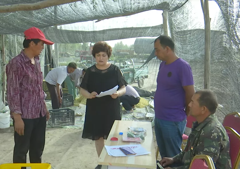 買賀甫熱提·沙塔爾在合作社發(fā)工資現(xiàn)場(chǎng)