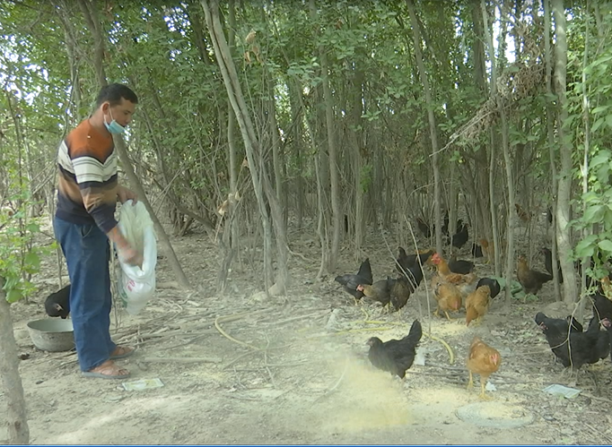 村民艾克拜爾·艾海提在養(yǎng)雞場(chǎng)