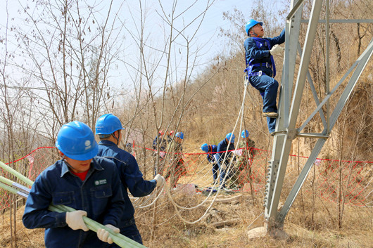 分工明確,檢修人員登塔懸掛傳遞繩索