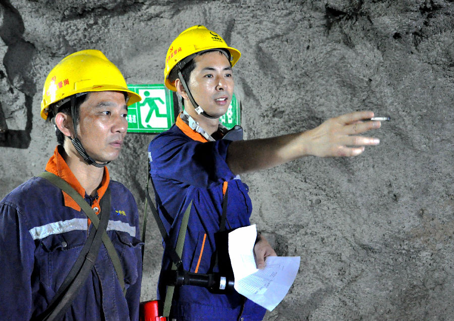 “志兵,-559水平2線的頂板浮石較多,我們一起去現場叮囑他們,做好安全確認。”7月2日早上8點半,在中國黃金湖北三鑫金銅股份有限公司井下-559米水平,采礦車間機械化中段副工段長嚴濤帶著當班值班長胡志兵,來到T721采場檢查現場作業安全。該處由于頂板風化嚴重,盡管嚴濤已在班前會再三強調,但他還是不放心,要再叮囑一下作業工人。