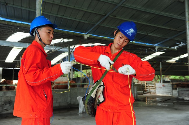 黔江區(qū)供電公司員工為養(yǎng)牛大戶接通動力電