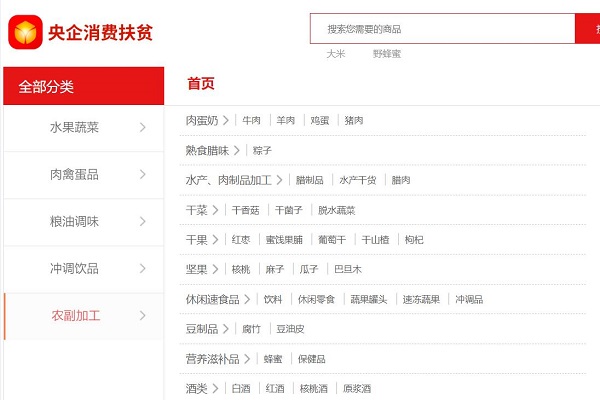 根據《通知》,已有電商平臺的中央企業,將在“央企消費扶貧”電商平臺開設央企館,建立入口引流,實現服務商資源、產品數據集成互通;尚不具備電商平臺的中央企業,將入駐“央企消費扶貧”電商平臺,開設相應的央企館和地方館,協調定點扶貧縣供應商入駐、上架農特產品。
