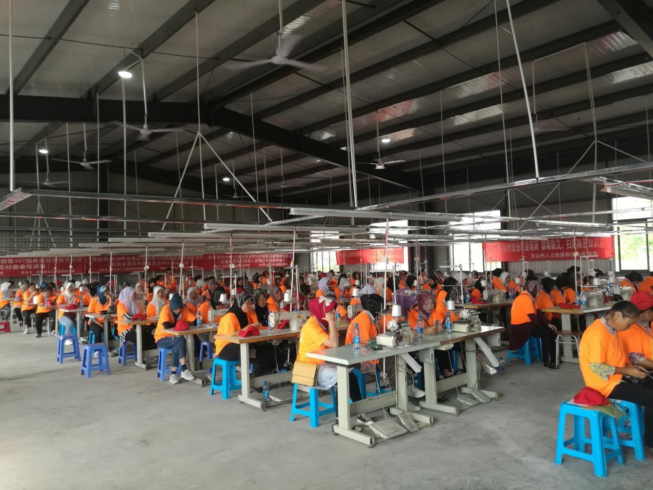 中國(guó)石化在新疆柯坪縣引進(jìn)的興科服飾公司項(xiàng)目生產(chǎn)車間