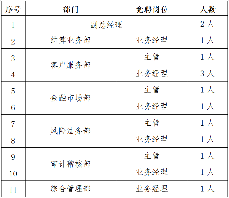 1.具有6年以上銀行支行副行長(同職級)或財務公司部門主管的工作經歷。