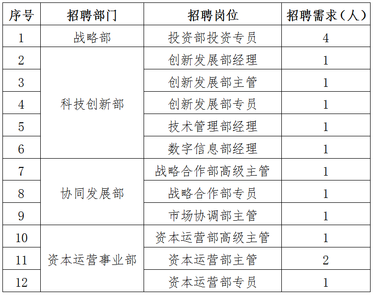 (1)大學本科及以上學歷,財務、法律、金融、經濟管理等專業背景(理工科和上述專業復合型人才優先),具有上市公司或大型企業投資部門、證券公司投行或中介機構從事投資管理、并購重組3年以上相關工作經驗,通過注冊會計師考試或保薦代表人資格考試者優先;
