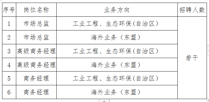 進一步拓展公司工業工程、生態環保等相關業務,現對所屬南寧分公司相關經營崗位面向社會公開招聘。