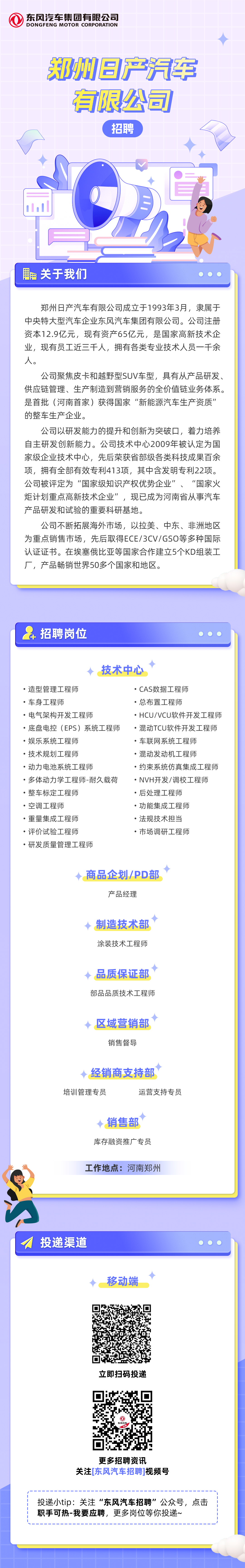 鄭州日產(chǎn)汽車有限公司招聘公告