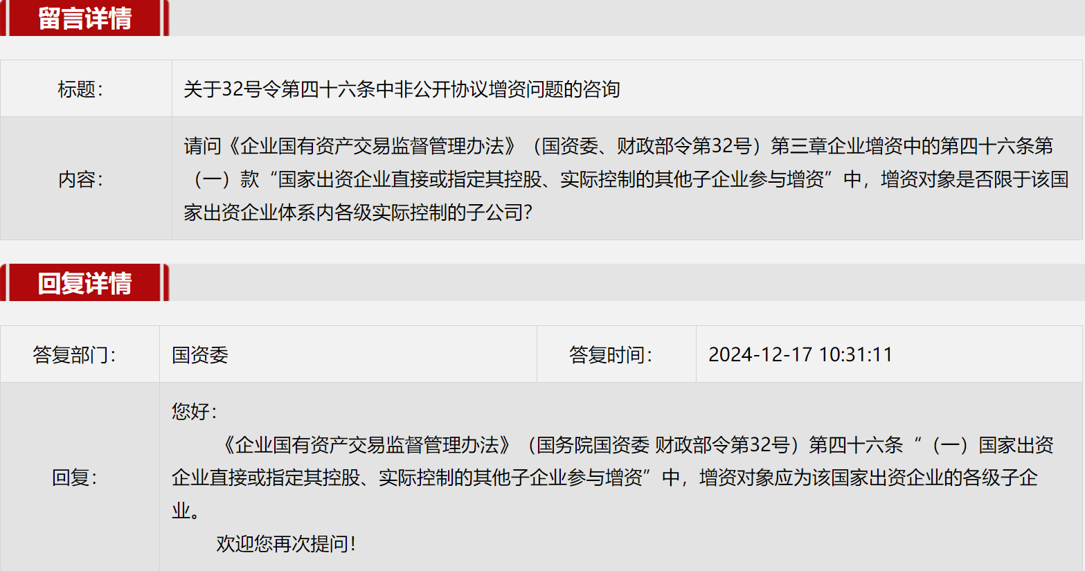 2024年12月國務院國資委網站政務咨詢欄目部分網友提出的咨詢,我們初步做出了認真的回應,現選擇五條關注度高、點擊量高的問題,再次推薦分享。